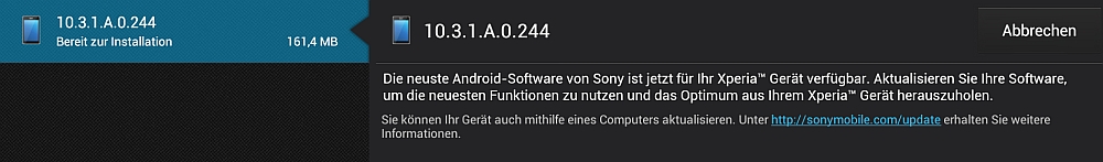 Gestern Abend allerdings kam die oben abgebildete Nachricht, dass ein Update verfügbar sei. Also mal schnell downloaden und gut. Ach, ne… Ich habe diesen Monat mein Datenlimit erreicht, nur noch 64 kB Downloadspeed. OK, ich will’s trotzdem haben, nebenbei würden mir dann ja auch im neuen Monat gleich wieder 160 MB fehlen. Gegen 20 Uhr den Download gestartet, heute Morgen irgendwann nach 5 Uhr war der Download komplett. Also Installation starten und abwarten, was mich so erwartet. Aber Nein, noch eine Hürde, der Akku muss mindestens 50% Ladung haben… OK, also noch einmal warten. Rund eine Stunde, war ziemlich leer das Teil.