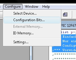 In MPLAB wird die Konfiguration so beim Brennen festgelegt, bei anderen Programmiergeräten muss dies über das jeweilige Programm geschehen!