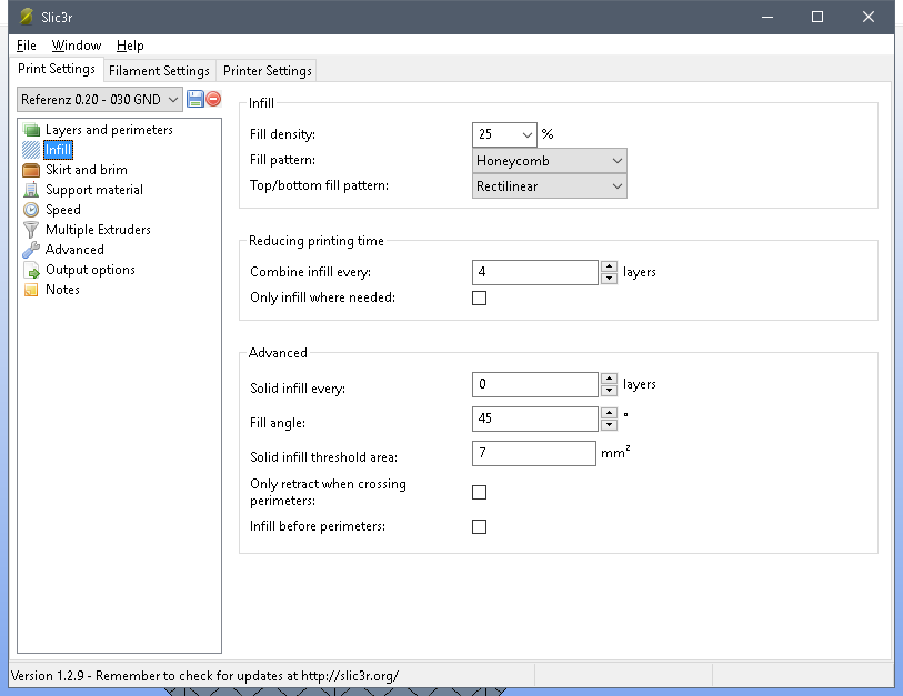Lange Rede kurzer Sinn: Ich nutze Slic3r und stelle mal ein paar Screenshots von meinen Settings ein, mit denen ich bei einer Schichtdicke von 0,2mm als Ausgangspunkt gute Erfahrungen gemacht habe, Änderungen basieren eigentlich immer auf diesen Werten.