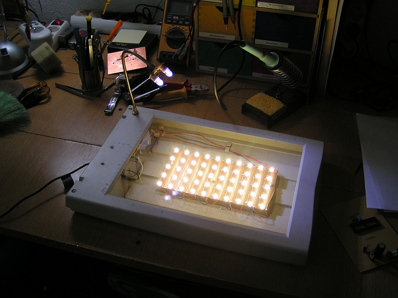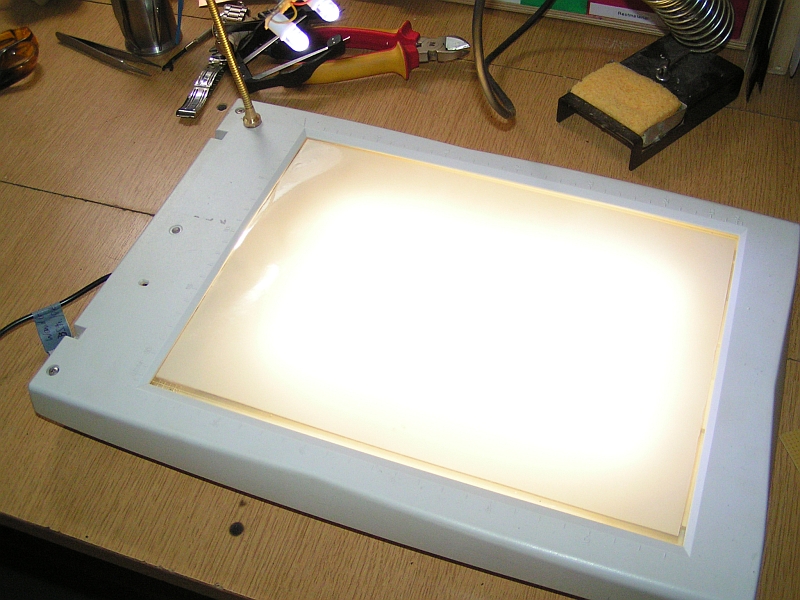 Oft habe ich beim Arbeiten das Problem, daß mir irgendwie das Licht nicht reicht bzw. nicht da ankommt, wo ich es gerne hätte. Irgendwann fiel mir mal im TV bei irgendeiner der CSI Serien auf, das die so schöne Leuchttische haben…